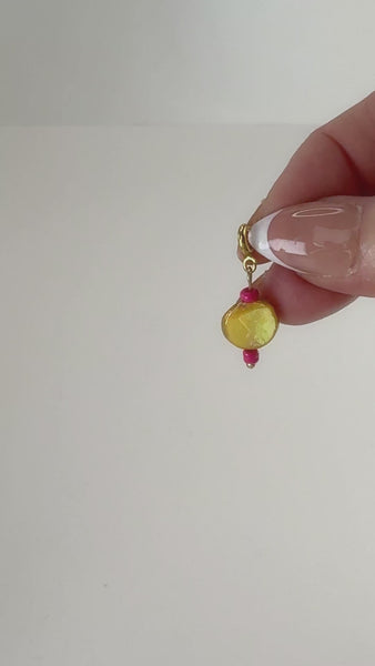 DYO-BROWN SHELL DISC WITH PINK GLASS BEADS